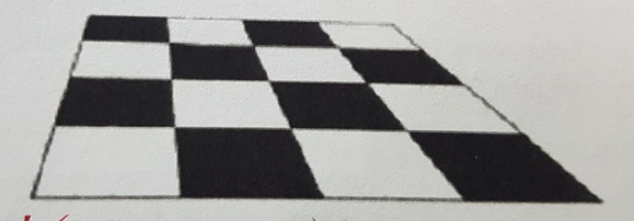 도형의 한쪽이 튀어나와 보여서 입체로 지각되는 착시현상 | 사다리꼴로 받아들이지 않고 체크무늬 바닥타일이 비스듬하게 기울어진 것으로 받아들이는 경향. 행태주의 심리학에서의 원리 |